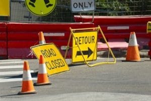 - Travel lane alignment shifts. As travel lanes shift back and forth to allow for road rebuilding, motorcyclists must cross edges, lane markers, rumble strips, drainage grates, and other hazards they wouldn’t ordinarily have to drive over.